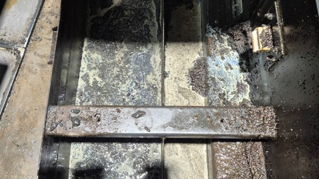 Následně jsme stroje naplnili produktem NOVAMET 760, moderní emulzí navrženou pro vysoký výkon a dlouhou životnost. Tato kapalina poskytuje optimální mazací a chladicí vlastnosti a zároveň odolává bakteriální kontaminaci, což je klíčové pro stroje, které byly dříve vystaveny nekontrolovanému růstu mikroorganismů. Výzvy při obnově strojů Dlouhodobé zanedbávání péče o obráběcí kapalinu se výrazně podepsalo na stavu strojů. Zbytky staré emulze vytvořily tvrdé usazeniny a biofilm, což způsobilo složitější a časově náročnější proces čištění. Zákazník si nyní uvědomuje, že pravidelná údržba obráběcí kapaliny není jen otázkou kvality výroby, ale také prevence nákladných odstávek a poškození zařízení.