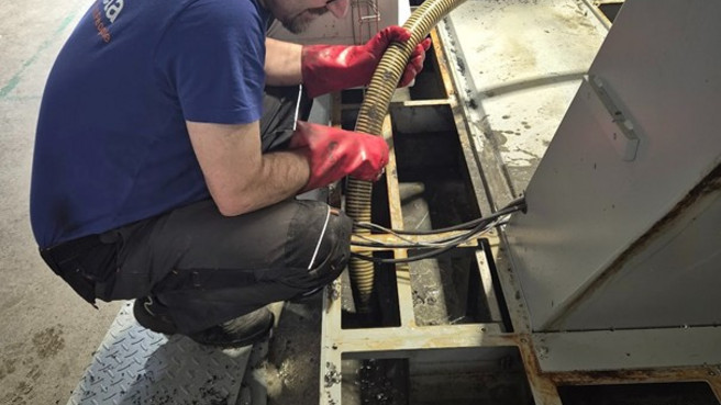 Nejprve jsme odstranili zbytky staré emulze a provedli důkladné vyčištění všech zásobníků, potrubí a mazacích okruhů. Cílem bylo odstranit usazeniny, biofilm a bakterie, aby nová emulze nebyla ihned kontaminována.